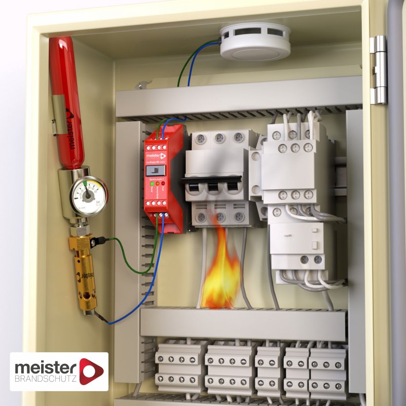 Die AMFE Löschanlage bietet zuverlässigen und kostengünstigen Brandschutz für Ihren Schaltschrank, Elektroverteiler sowie elektrische Anlagen!